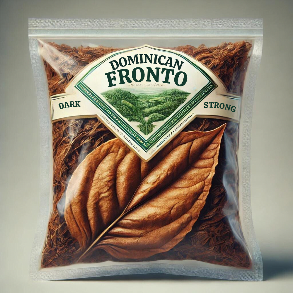 Ten handpicked Dark Air Cured Dominican Premium Fronto leaves in a resealable zipper bag. These leaves are typically thick and bold, delivering a strong, intense smoke, making them ideal for grabba.